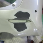↑作業前 右リヤバンパー リフレクター付近が縦に凹んでおります