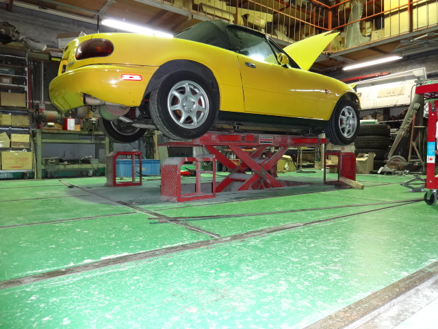 ↑床からリフトが登場! このリフトで更にリフトアップして車を持ち上げます。