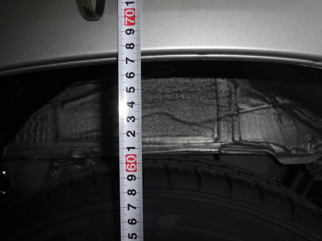 まずは 右前 運転席側の前タイヤ部の車高