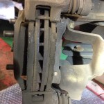 ↑パッドの接地面のプレートを清掃(ブレーキパッドがスライドする部分です そのままでも良いのですが 清掃してキレイにしてあげた方が気持ちいいですしね・・・ ここの部分は窓のサッシュのレールみたいなものです)