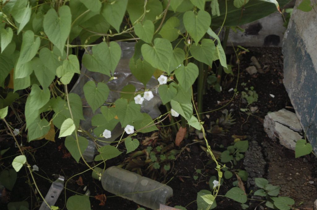 ↑これ 今年も顔を出しました。。。 1cm位の花を咲かせる 朝顔がキレイです。。