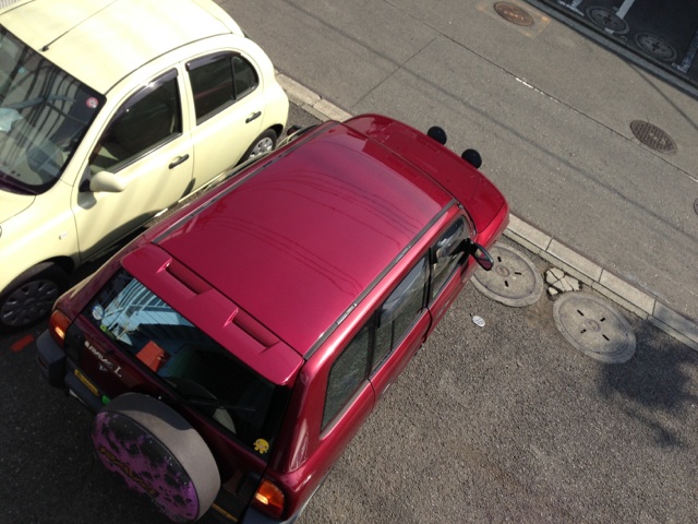S様の トヨタRAV-4 ラブ4 の上面の経年劣化による ボンネットとルーフ塗装の模様です。