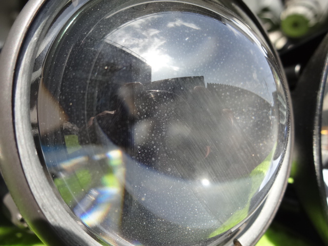 ↑レンズ右側を磨いて 左はこれから(だと思った。。)くすみ具合 これを清掃したのと しないのでは その後 全く違うのだ