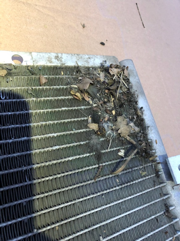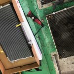 こちら クルマの前部 下部分にエアコン冷却装置はセットされている