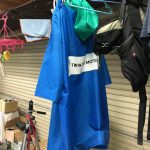 今朝 自分のロッカーから雨用のポンチョを出して着る