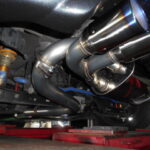 事故でマフラーに傷がついてしまいマフラーを交換している最中の画像です