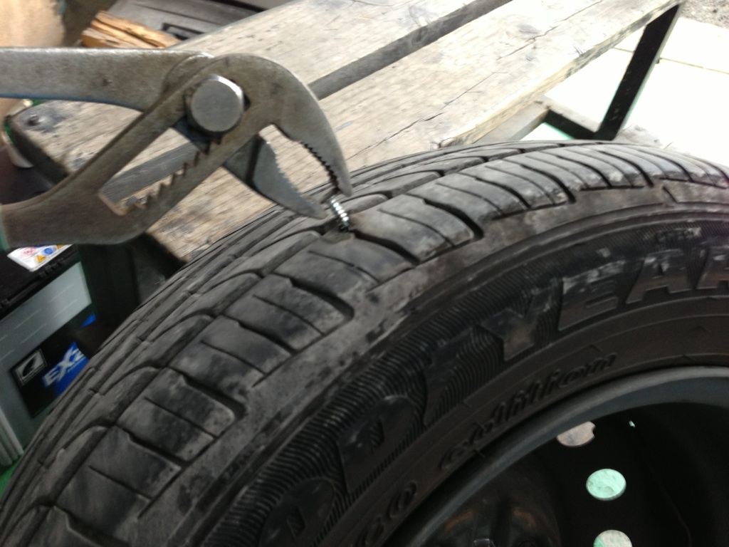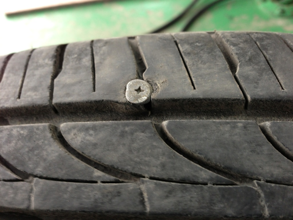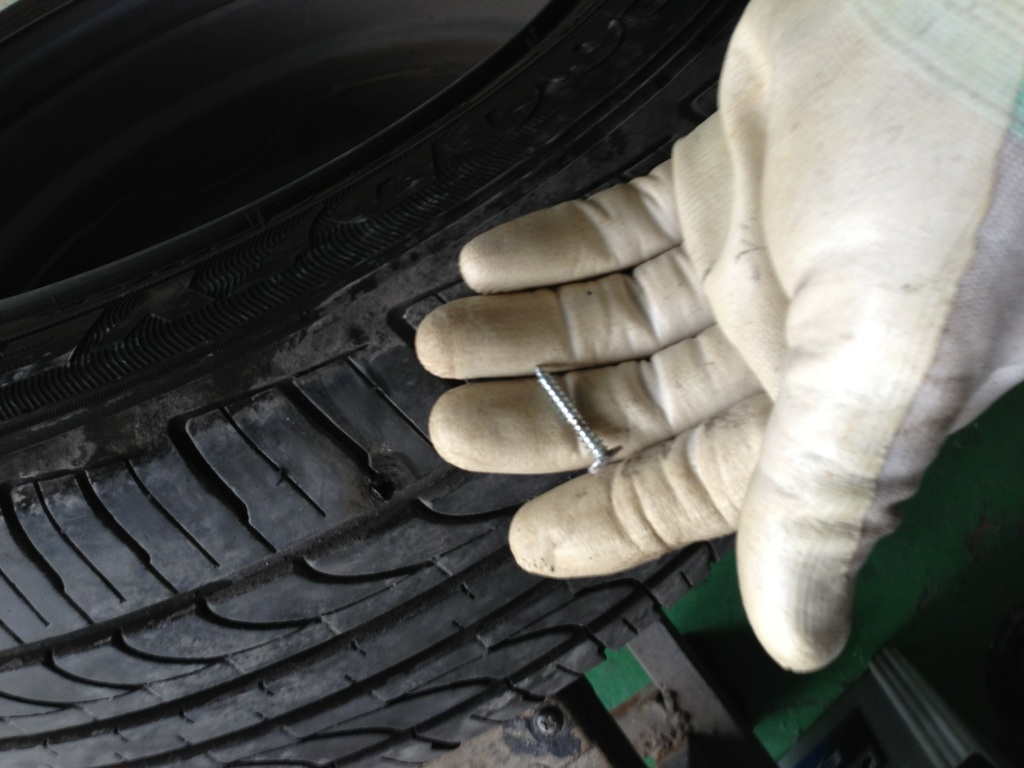 はい 刺さってました ネジの様なのが・・ まだ 刺さって間もない様子です