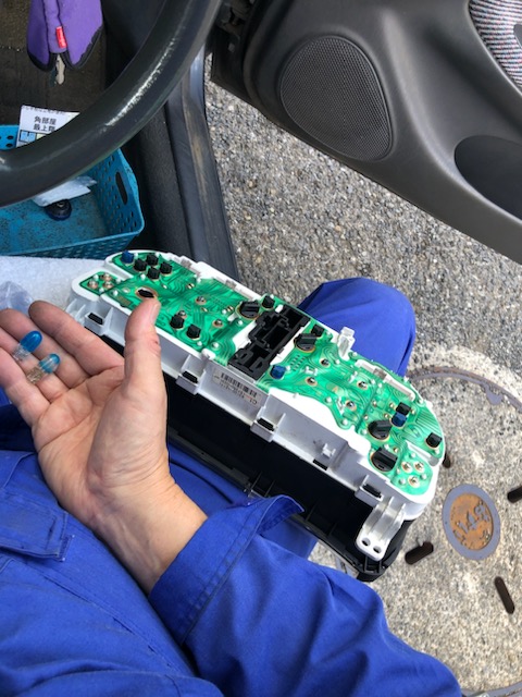 おはようございます 早速に仕事の話題から Mさまからのご依頼 「メーターの中を照らすランプが球切れしたので…