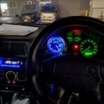 で・・・ 在庫で持っていた タコメーターを取り付ける事に でも メーターの電球が青色なの・・・ こちらのクルマの内装の電球は 緑色を基調としているから バランスがどうかな と心配だったが