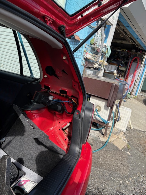 おはようございます   たまには 仕事の話を・・・ リヤフェンダー交換中の トヨタ サクシード …