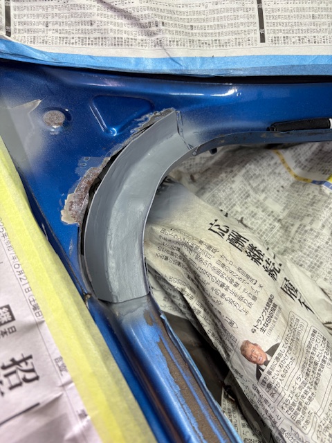 おはようございます たまには 仕事の話を・・・ リヤフェンダー交換中の トヨタ サクシード …