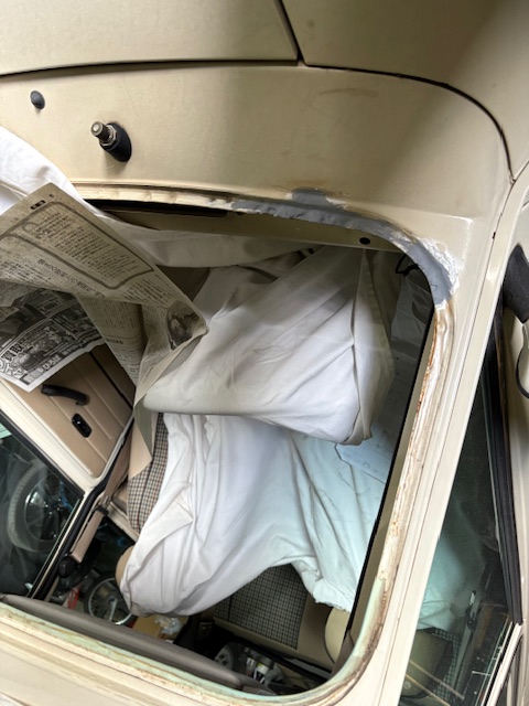 おはようございます たまには 仕事の話を・・・ リヤフェンダー交換中の トヨタ サクシード …