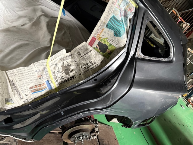 おはようございます たまには 仕事の話を・・・ リヤフェンダー交換中の トヨタ サクシード …