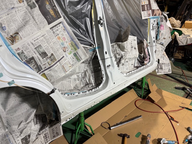 おはようございます ただ今 絶賛現場作業中・・・ スズキワゴンRのサイドシル(ステップ)交換作業・・ …