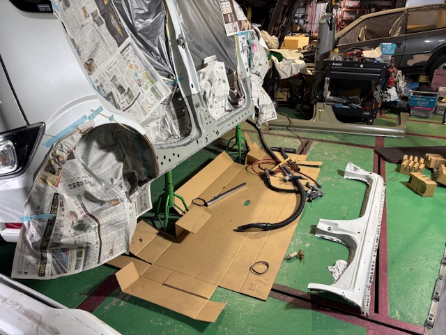 おはようございます ただ今 絶賛現場作業中・・・ スズキワゴンRのサイドシル(ステップ)交換作業・・ …