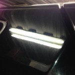 ↑この車の後部の塗装面です 蛍光灯の映りこみが ちょっとギザギザしているのわかります?? これを「ゆず肌」というのです。