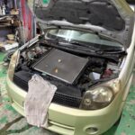 ラジエター破損の ニッサンラフェスタは まず 「直るか?直らないか?」を判断し ダメであれば そこで作業を中止して 代車を引き上げるの判断をしないといけないので