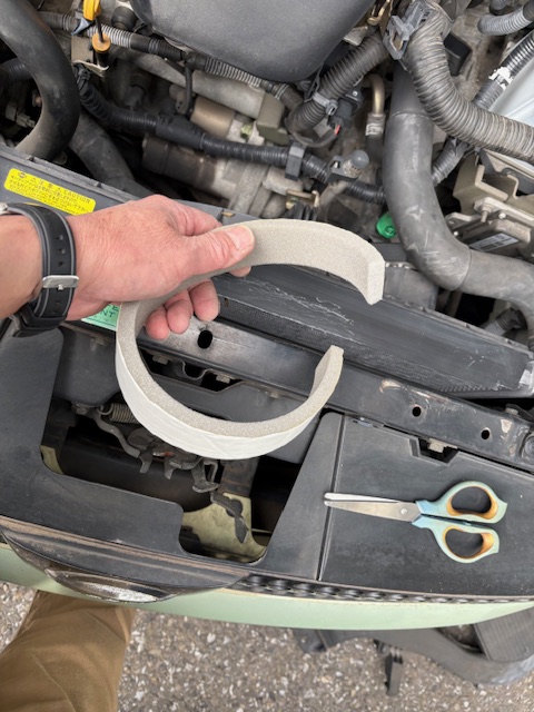 おはようございます お客さんが 待っている間に 応急処置(この時のトヨタ ヴィッツ) ゴムパッキンが切れてしまい…