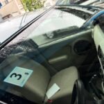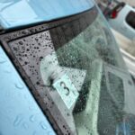 ↑車検ステッカー脇の水を弾いている部分 これも 油膜