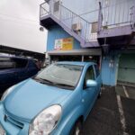 雨の中 クルマを外へ出し がらすに水をかけ清掃