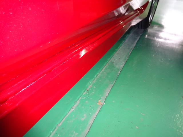 助手席側の サイドスポイラーの取り付けが いまひとつうまくいっていない様子