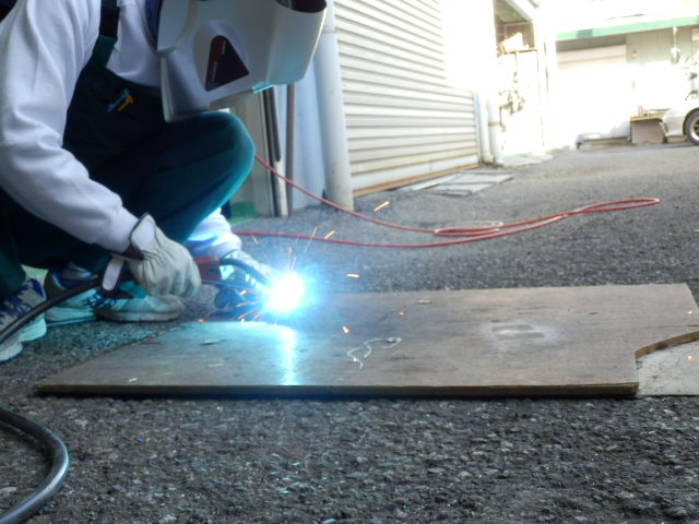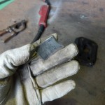 ↑はい 付いた! でも この部分だけの溶接では 強度的にもまったくダメでしょう きっと 使用したら ちぎれるか 変形して曲がるか・・・